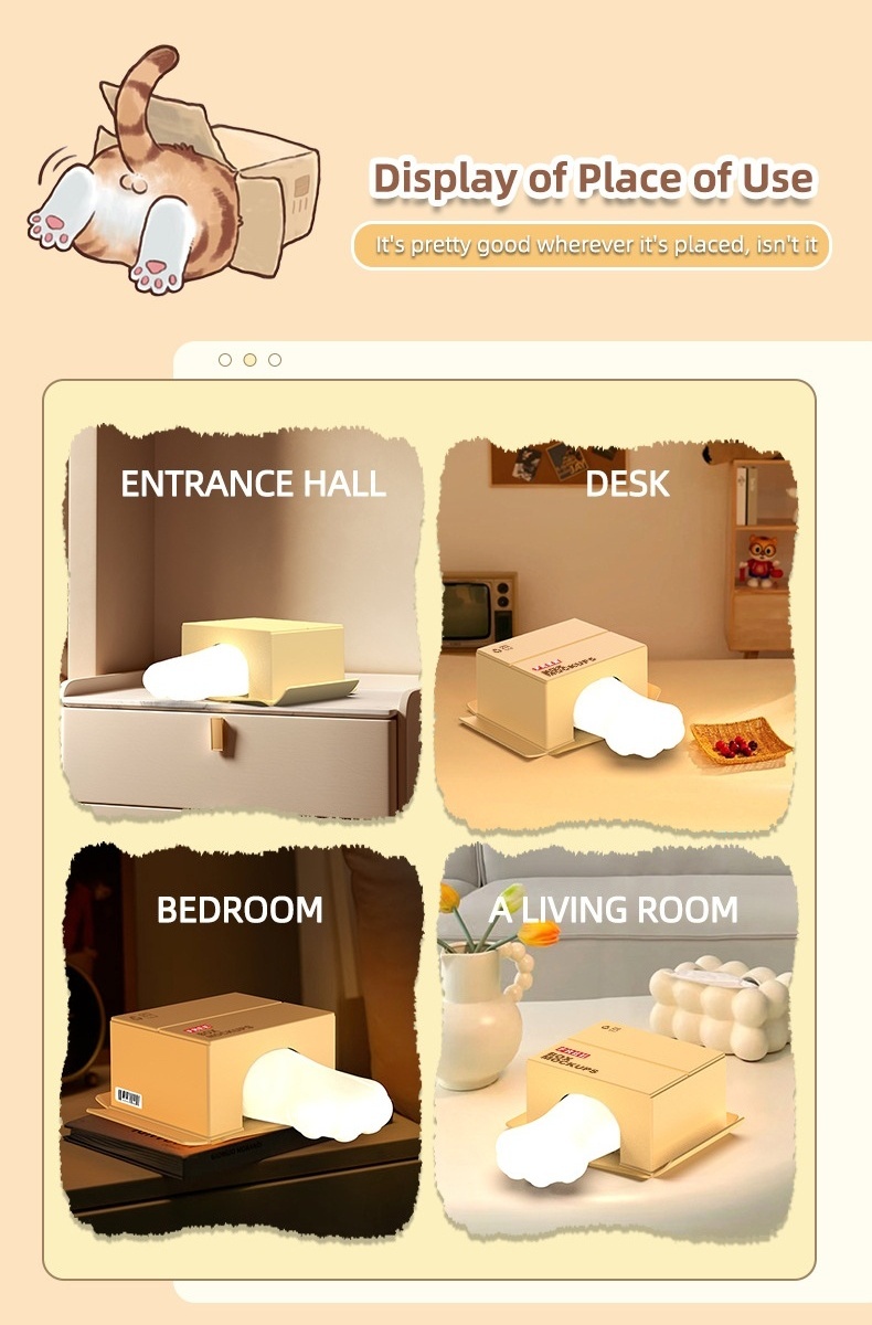 當燈光亮起,一隻軟萌貓爪從箱子裡探出來,彷彿在說:「鏟屎官,摸摸我嘛!」