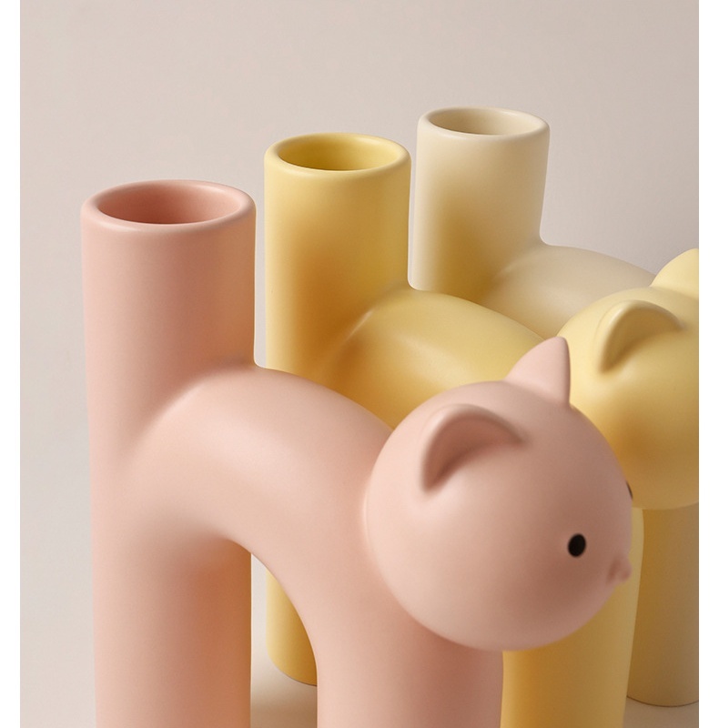 🌷🐾 貓咪在花裡醒來了!療癒系陶瓷花器