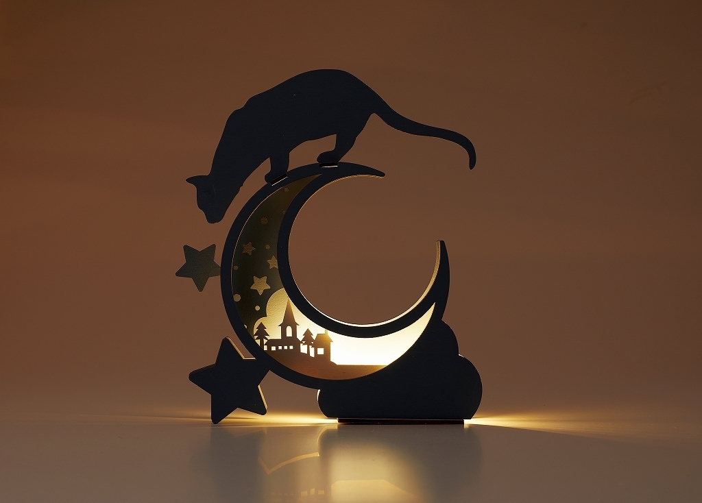 SETO CRAFT 3D 木製 DIY 貓形氛圍小夜燈 - 貓與魚