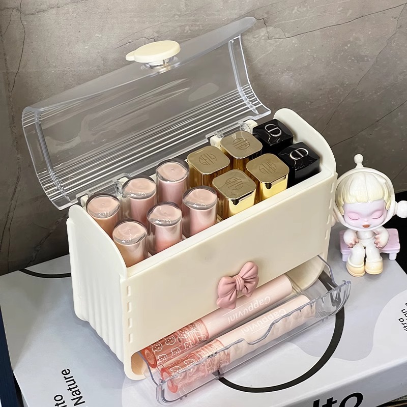 ◆ 雙層收納設計:上層可放口紅/唇釉,下層抽屜可收筆狀化妝品或護手霜。