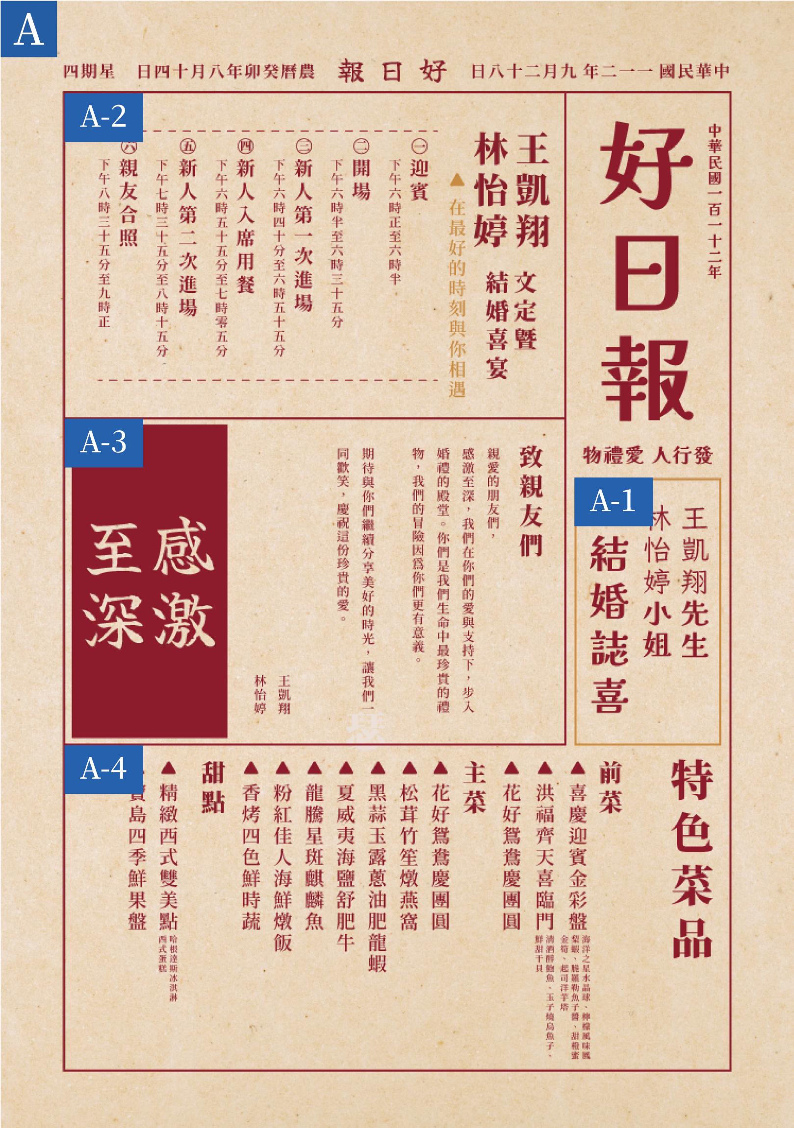 A.報紙封面A-1.新人雙方姓名與祝賀詞